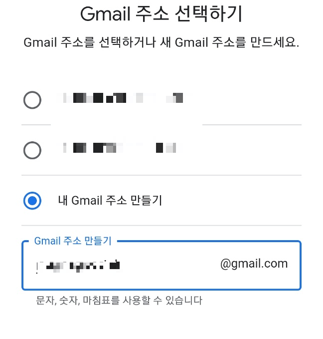 8. 구글에서 제안하는 이메일 조합도 있지만, 내 Gmail 주소를 만들 수도 있다. 기억하기 쉬운 주소로 만드는 게 좋다!