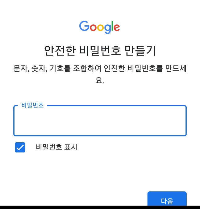 9. 구글 깡통 계정 만들기 마지막 단계로 비밀번호를 입력하면 된다.
