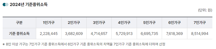 각 가구원의 소득인정액 합계로 자격요건이 확인되기 때문에 자세히 알아보실 분들은 꼭 아래 홈페이지에서 확인해주시길 바랍니다.