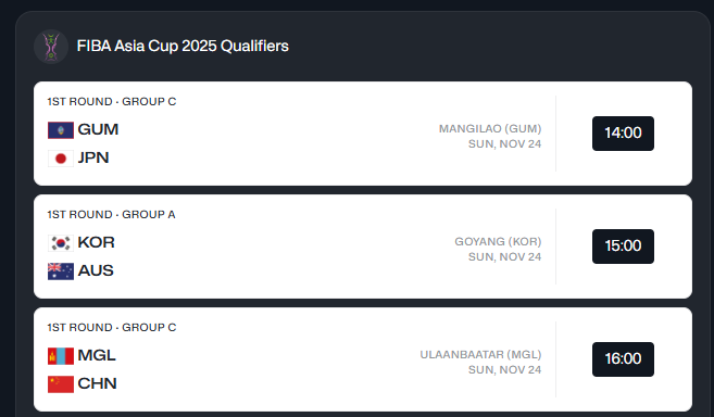 - 11월 24일(일) 15:00 - 한국 vs 호주