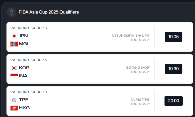 - 11월 21일(목) 19:30 - 한국 vs 인도네시아