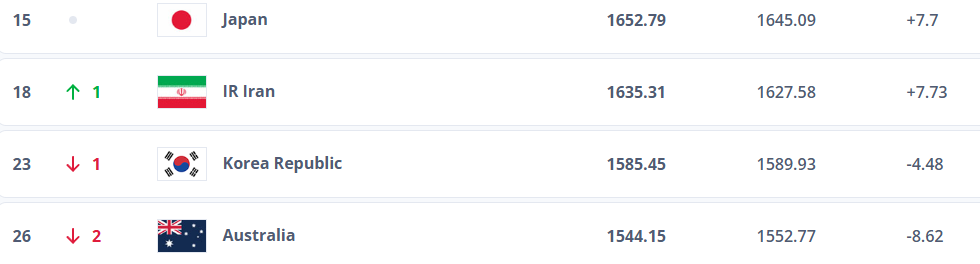 FIFA는 11월 29일 기준으로 새로운 랭킹을 발표했습니다. 대한민국은 1585.45점을 기록하며 지난달 22위에서 23위로 하락했습니다.