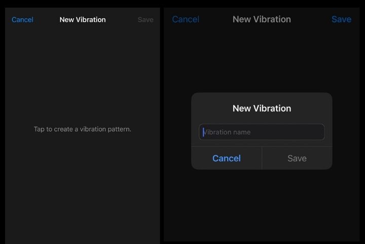 나만의 진동음을 만다는 방법은 굉장히 쉽다. 손가락으로 화면을 탭하면 된다. 직접 해보면 알겠지만, 화면을 살짝 터치하면 강도가 약해지고 또 간격을 최대한 길게 하면 진동인가 싶을 정도로 세기가 약한 패턴이 된다. 또 빠르게 혹은 화면을 꾹 터치한다면 강도가 더 세게 된다. 새로운 이름을 설정하고 저장하면 끝. 너무 쉽다.
