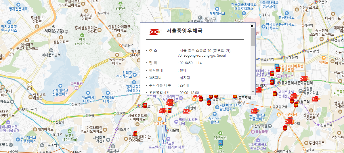 | 무인 우편 접수기 (내부) | 09:00 ~ 18:00 | X | 공휴일 운영 안 함 |