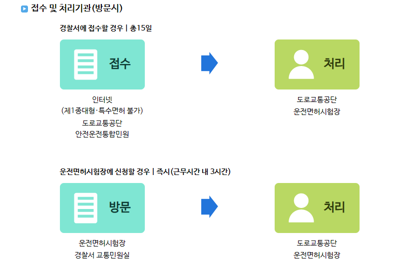 - 운전면허시험장 방문: 당일 발급 (1~3시간)