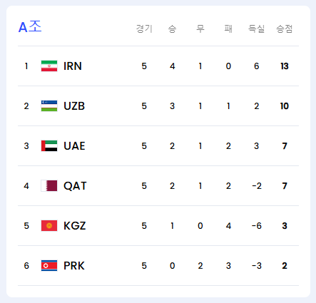 월드컵 본석 티켓이 걸려있는 만큼 승점뿐만 아니라 골득실, 상대 전적까지 영향을 미치기 때문에 모든 경기가 긴장감 넘칩니다!