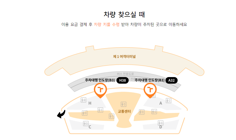 3. 귀국 후 차량을 인도받을 때는 사전에 안내받은 정산소로 이동해 주차료와 주차대행 요금을 결제합니다.