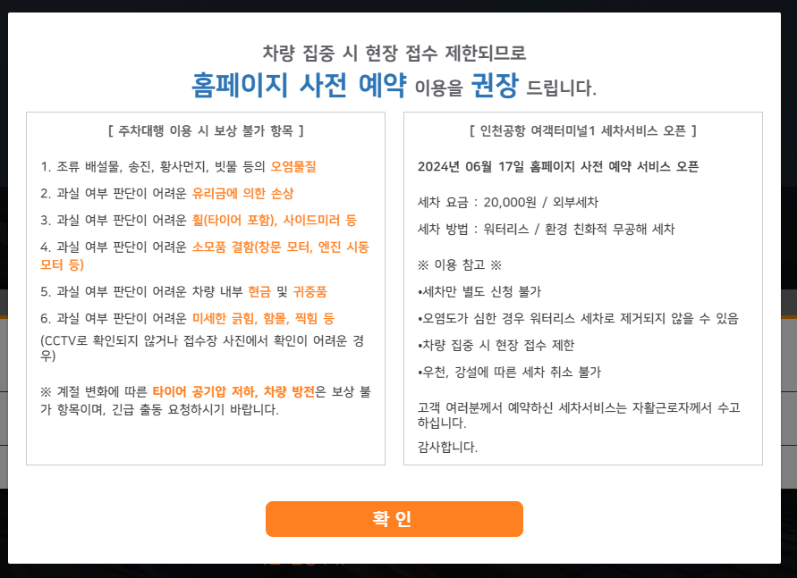 인천공항 제1터미널 주차대행 예약 방법
