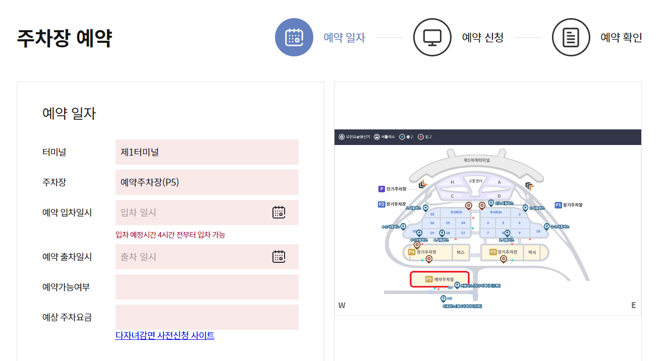 2. 차량 정보와 이용 날짜를 입력하고, 개인정보 처리 방침에 동의한 후 예약을 완료합니다.