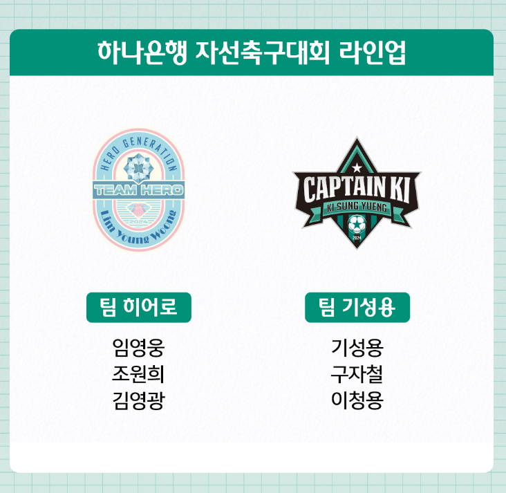 - 참가팀: 팀 히어로(임영웅) vs 팀 기성용