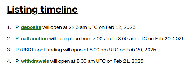 - 현물 거래 개시: 2025년 2월 20일 오후 5시 (PI/USDT 페어)