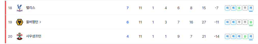 사우샘프턴 역시 프리미어리그 적응에 어려움을 겪으며 하위권에 머물고 있습니다. 다만, 최근 다섯 경기에서 연속으로 패하면서 강등권 탈출에 위기를 맞이했니다.