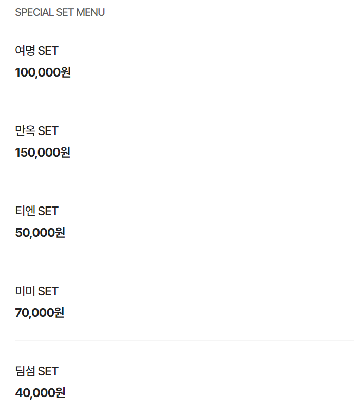- 주요 메뉴: 점심 코스 - 120,000원 / 저녁 코스 - 200,000원