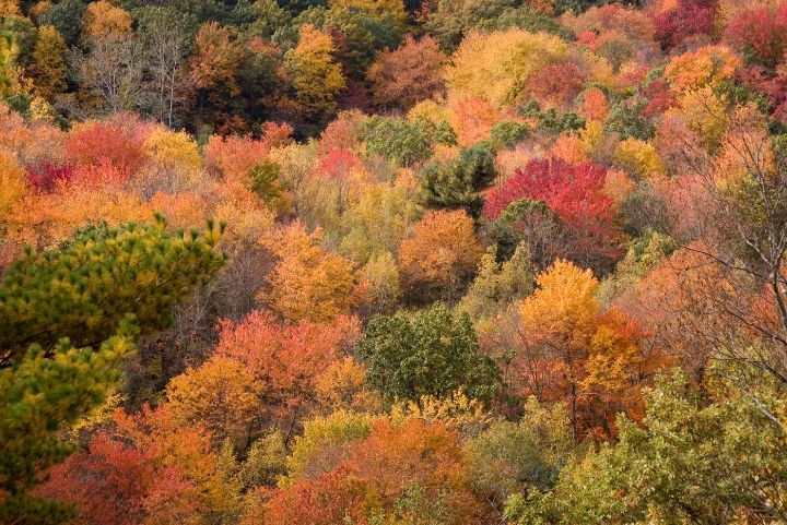 강원도 지역은 10월 초부터 중순까지 단풍이 절정을 맞이합니다. 해발고도가 높은 산들이 많아 더욱 빠르고 강렬한 색감의 단풍을 즐길 수 있는 곳입니다.