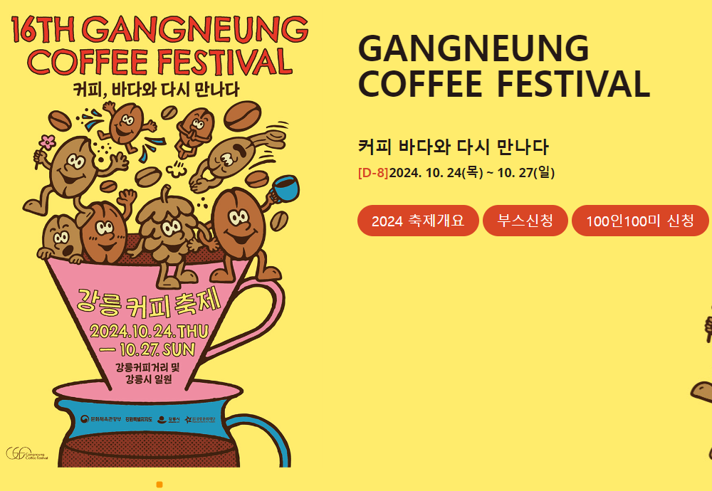 - 특징: 커피를 사랑하는 분들께 강릉 커피 축제는 특별한 경험을 선사합니다. 강릉의 특산 커피를 맛보고, 커피 향기 가득한 거리에서 다양한 문화 공연도 즐길 수 있습니다.