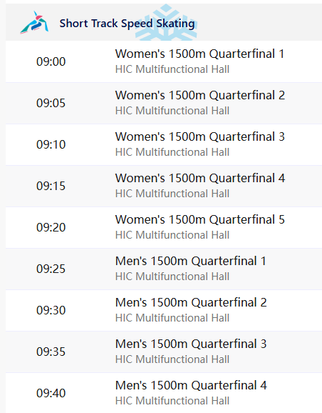 | 2월 9일(일) | 스피드스케이팅 남·녀 1000m 결승 |