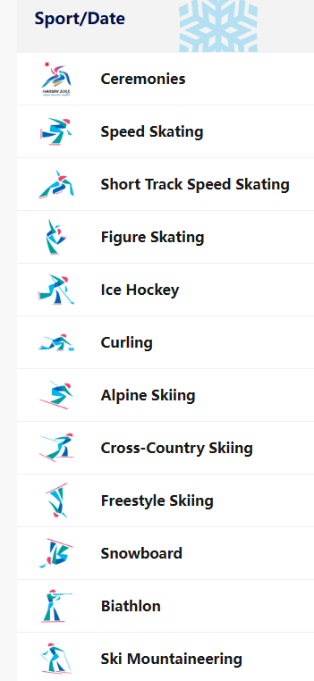 - 하얼빈 올림픽 센터: 개막식, 폐막식, 피겨스케이팅, 아이스하키