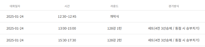 - PBA: 2025년 1월 24일(금) ~ 1월 30일(목)
