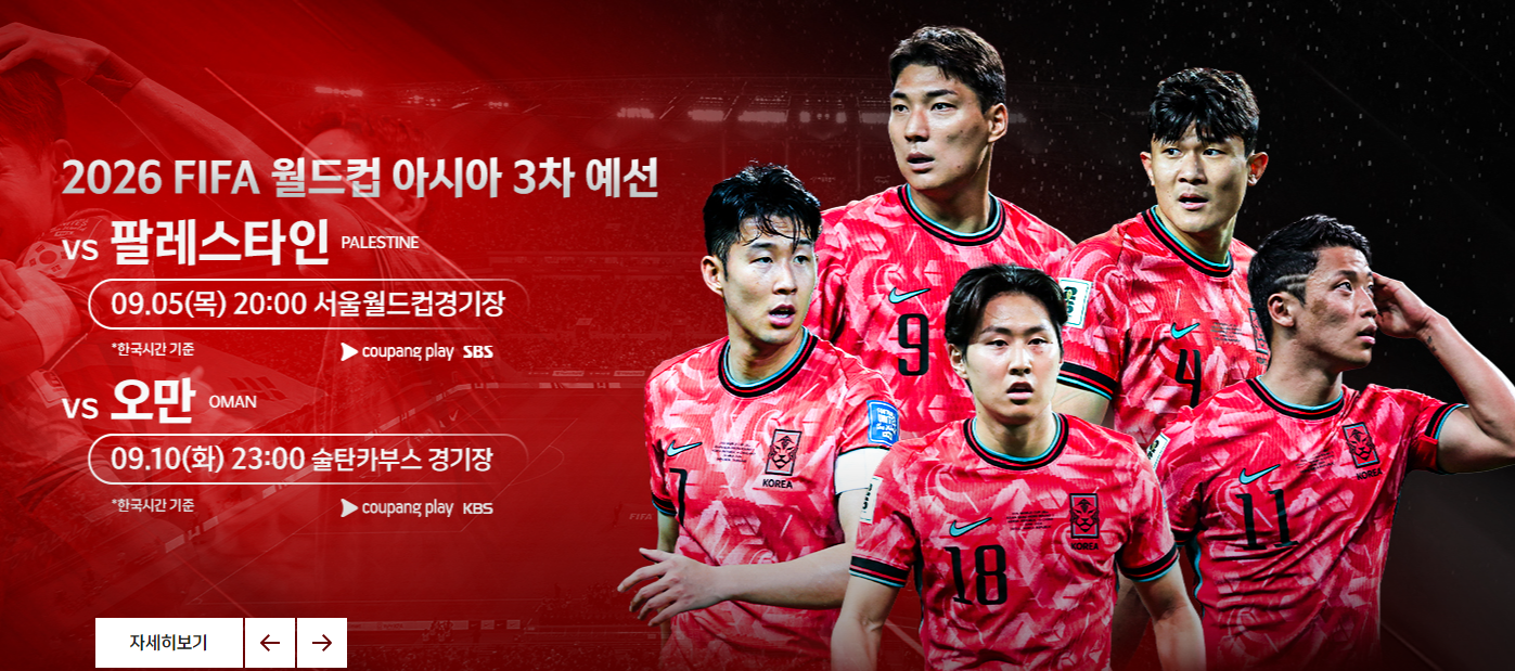이번 글에서는 곧 있을 팔레스타인과의 홈경기와 오만과의 재대결을 포함해 대한민국 축구 국가대표팀 명단과 예선 일정을 자세히 살펴보겠습니다. 시간이 없으신 분들은 아래 링크에서 바로 확인해 볼 수 있습니다.