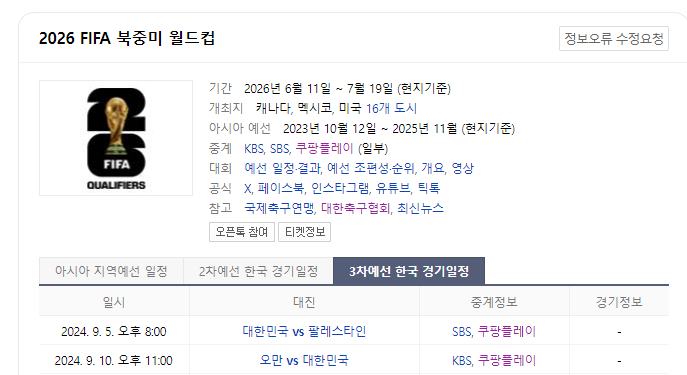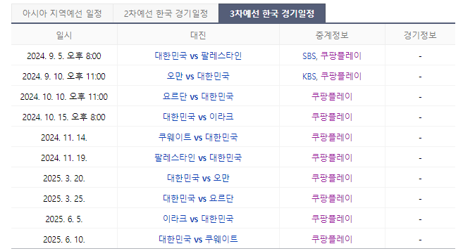쿠팡 플레이에서 3차 예선 경기의 독점 중계를 제공합니다.