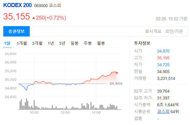 예를 들어 'KODEX 200' ETF를 매수하면, 코스피 200 지수에 포함된 200개 기업의 주식을 조금씩 보유한 것과 같은 효과를 얻게 돼요.